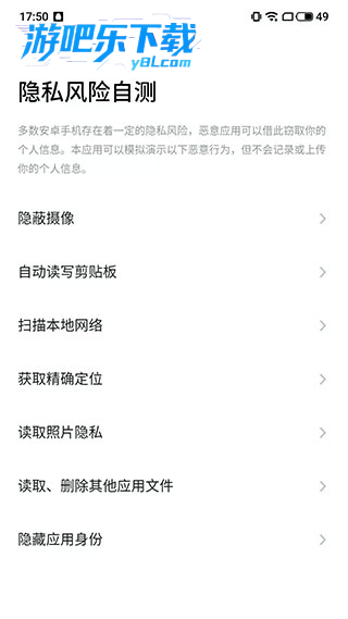 魅族隐私风险自测app官方版下载是 Flyme 官方推出的安卓通用隐私检测工具,核心价值是模拟恶意应用行为、排查权限防护完整性、验证系统权限提醒有效性,帮助用户快速判断手机隐私安全水平,适配所有安卓机型。