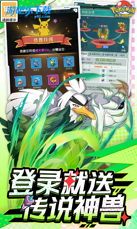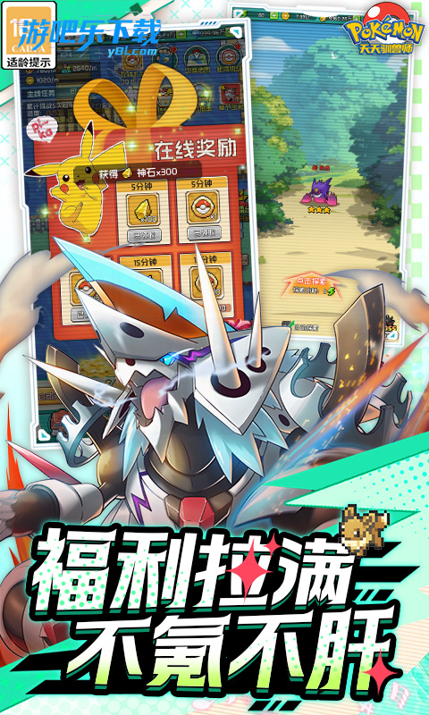 覆盖全时代精灵,完美复刻宝可梦原著世界观与精灵设定,唤起童年回忆,核心目标聚焦 “成为宝可梦大师”,复刻道馆挑战、冠军之路等经典玩法,主打 “不氪金不氪肝” 设定,日常任务、签到即可获取海量资源,送满 V(V17)、10 万钻石、丰缘三神,首充领 SS 神兽超梦。