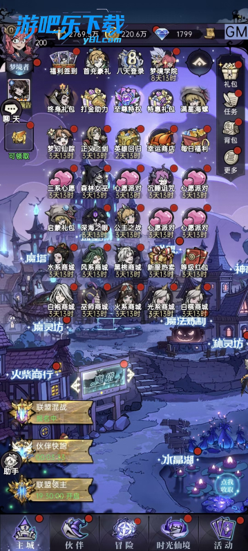 限时活动:* 七天乐:新手核心,完成获大量资源和伙伴* 幻境试炼:第七轮后开启更多活动 (心愿祈愿、升星盛典等)