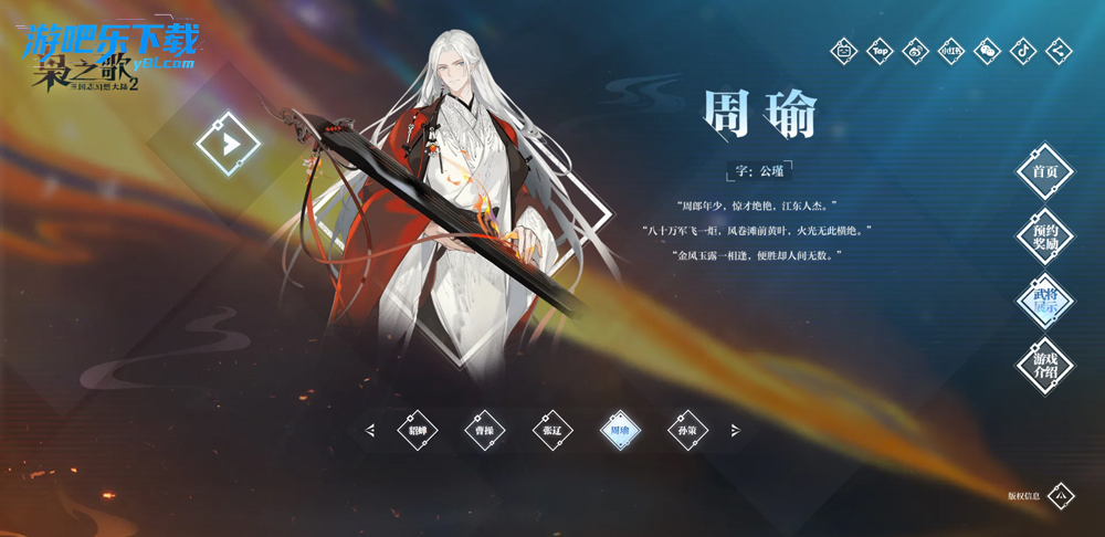 周瑜(赤焰)、马超、孙尚香、丁奉、徐盛、姜维、公孙瓒、伏寿、张苞、郭嘉(流泓)
