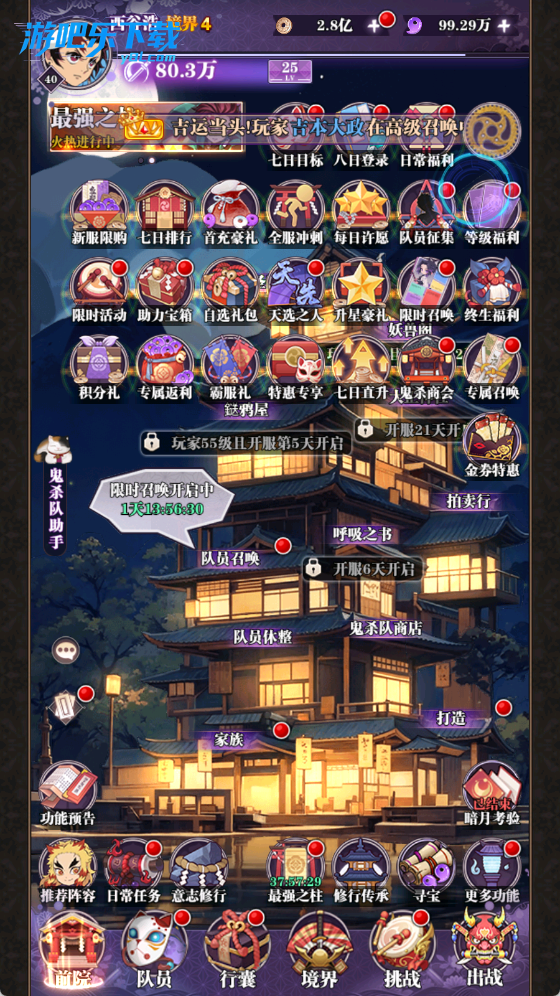 玩家基本熟悉英雄阵营搭配,以及知道自己需求的英雄类型,以及了解后续的发展方向。除了基本的登录奖励,还有资源副本,鼓屋敷,以及日常副本,每天可以参与领取奖励。