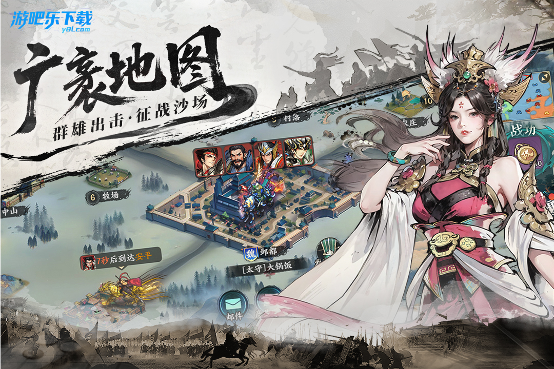 百战群英手游安卓版是一款三国题材策略国战手游。主打 “实时国战 + 名将养成 + 封地经营”,以水墨国风美术还原乱世沙场,玩家选择魏蜀吴 / 群雄阵营,招名将、建封地、打城池、参与千人同屏实时攻城,兼具策略深度与轻量化养成体验!