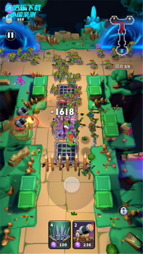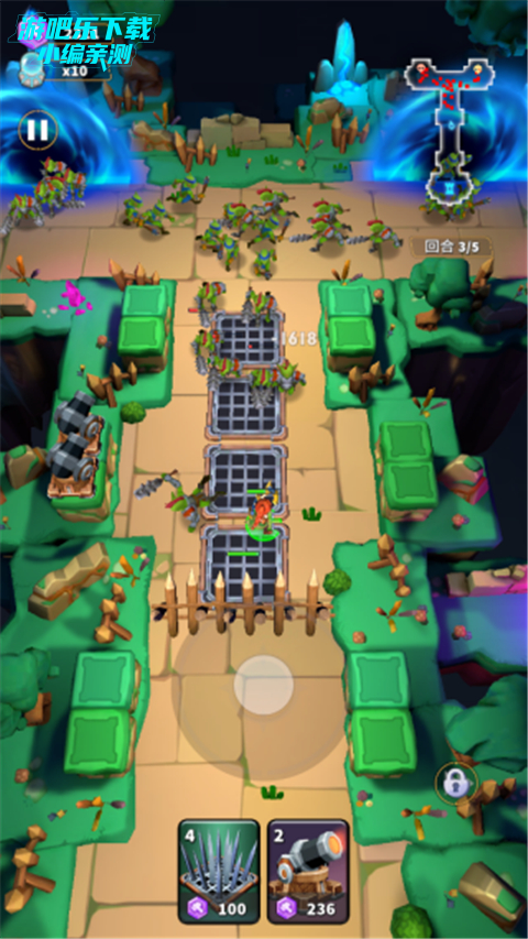 3、安置地刺和炮台射击大量的敌人,守卫水晶的安全,合理的安置炮台。