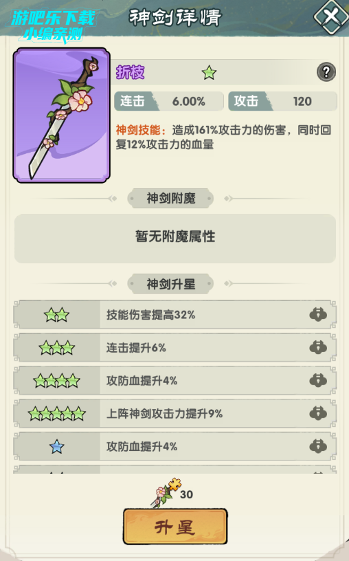4、碎片可用于对应神剑升星,升星后可以获得属性或者技能效果提升。