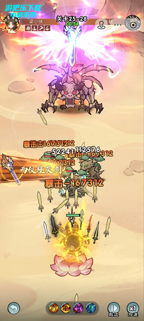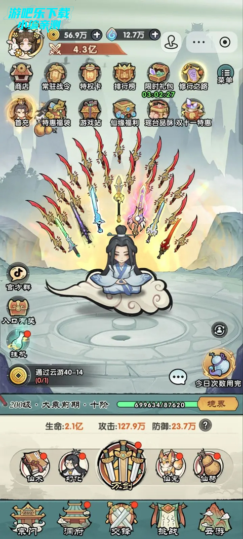一、主角有20把本命剑,通过升级和升阶提高攻击力。