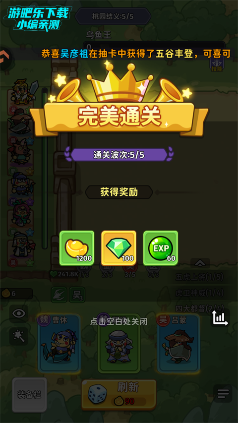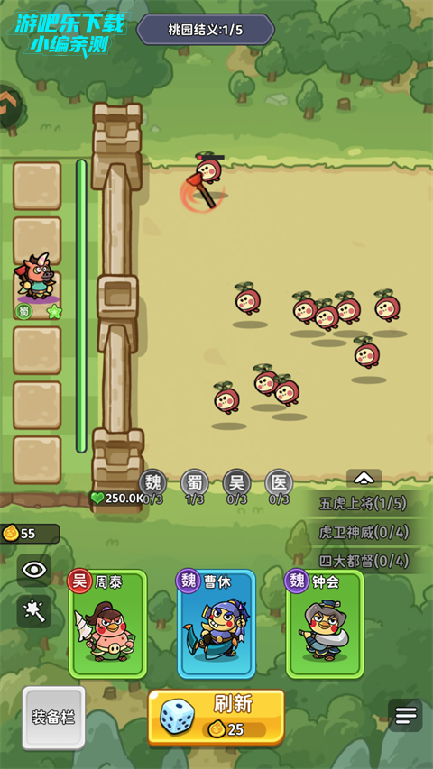 核心逻辑:黄盖反伤,周泰减伤保前排,大乔、华佗续航,刘备控场,专门克制高攻 BOSS,避免被秒杀。