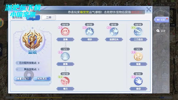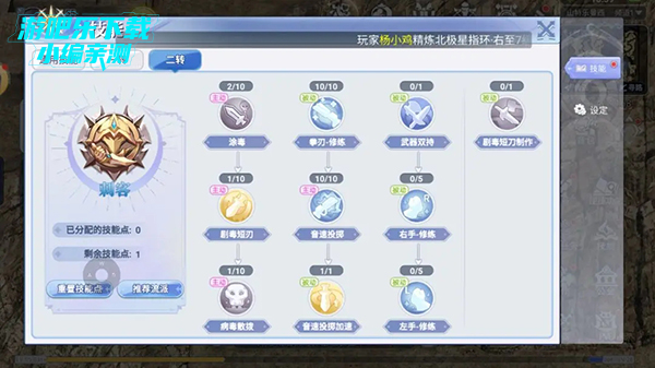 残影+10,隐匿+1,施毒+10,毒刃+10,解毒+1,偷窃+7