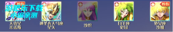核心角色:艾欧里亚(坦)、黄金箭星矢(输出)、迪斯马斯克(异常)、维罗妮卡(治疗)、阿布罗狄(补控)