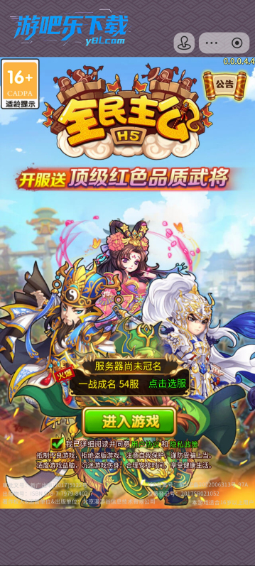 全民主公H5是一款以三国时代为背景,融合休闲塔防、RPG策略、卡牌武将养成三大核心玩法的轻量化H5手游,凭借Q版国风画风、多元策略体验及丰厚福利体系,成为三国题材游戏中的热门选择,支持多端即开即玩。