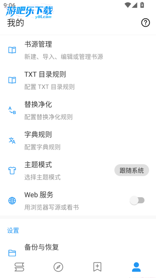 书源管理:通过导入本地书源文件,扩展可阅读内容,解决部分书籍无资源问题。