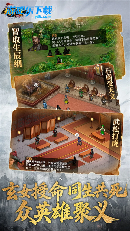 阎罗殿之战:分 3 个房间,依次击退牛头马面、黑白无常,最后集火阎罗王(鬼兵会复活,不恋战),吴用控场 + 九天玄女禁咒压制,黑化武松秒阎罗王。