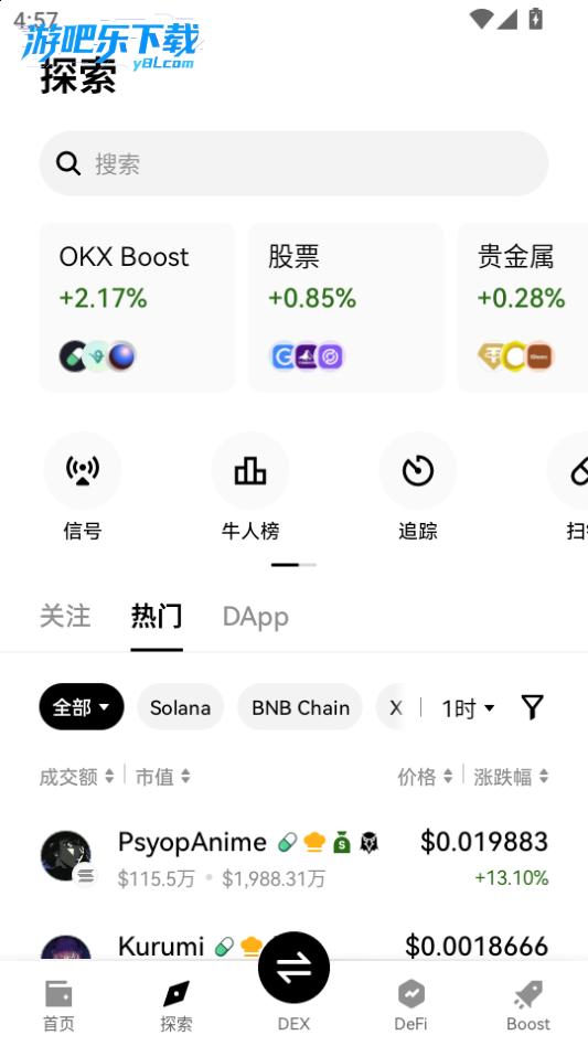 下载进入dex钱包软件,点击探索