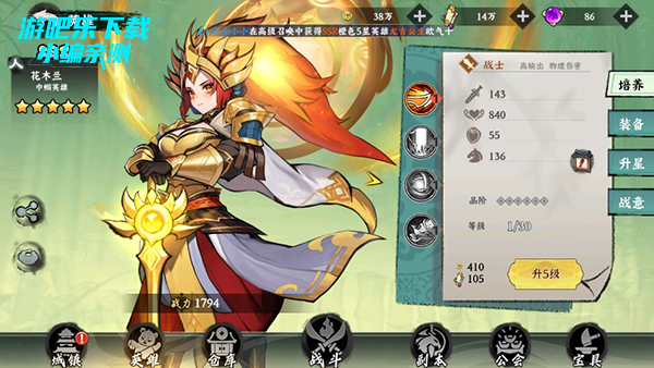 1、可同时上阵5个英雄,外加1个援军英雄(解封徽章激活)