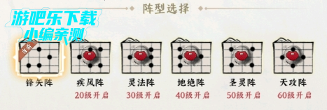 3、布阵时有多种阵型可选择,分别为:锋矢阵、疾风阵、灵法阵、地绝阵、圣灵阵、天攻阵。
