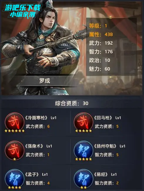优先升级 “百分比属性加成” 技能(如武力 + 0.5%),次选固定属性加成。