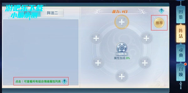 接下来就到了上阵界面~这里我们选择兵魂伙伴上阵出战,上阵伙伴可以提升主角战斗力。而左边那两个切换阵容开启后玩家就可以更快捷的切换出战阵容,打起架来方便的不要不要的。右边可以直接看到上阵兵魂伙伴后获得的属性和战力加成。对于萌新玩家,只要点击推荐按钮就可以看到适合你的阵容搭配哦。