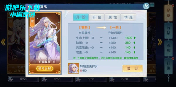 在图鉴界面中,玩家们能看到目前所收集的所有兵魂伙伴,点击卡片即可进入兵魂的养成界面,在这里可以消耗碎片对兵魂人物进行激活、升星,消耗陨铁砂可对兵魂伙伴进行升阶。