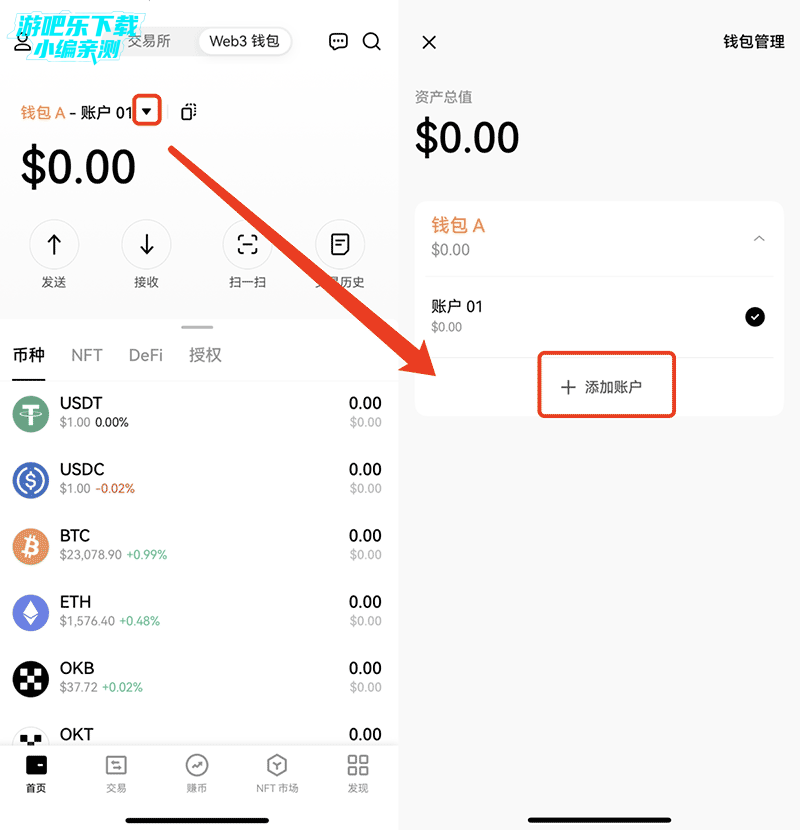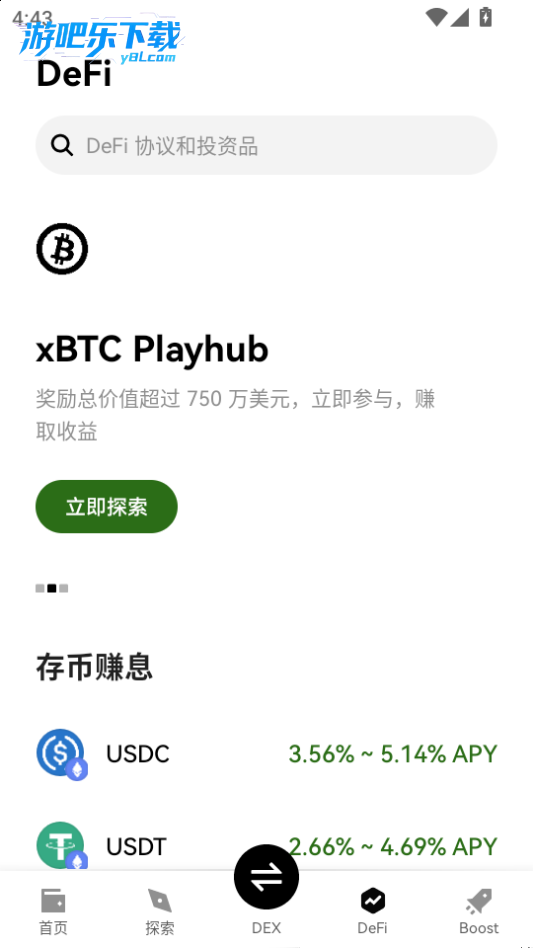 本站下载进入易ou钱包软件,点击探索