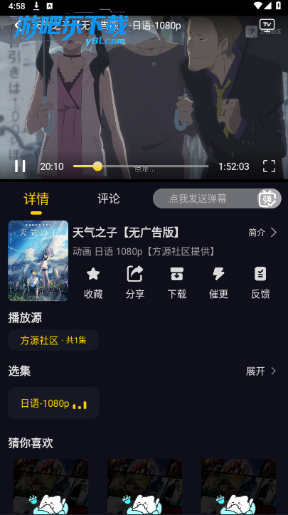 2、选择你要下载的影片点击进去,找到播放界面的【下载】按钮,