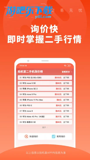 拍机堂app官方免费版是一款二手手机数码交易平台,由世界银行与京东战略投资打造。平台商品种类丰富,涵盖二手手机、二手平板、二手笔记本等多种二手数码产品,以及部分二手家电,满足不同用户的多样化需求。