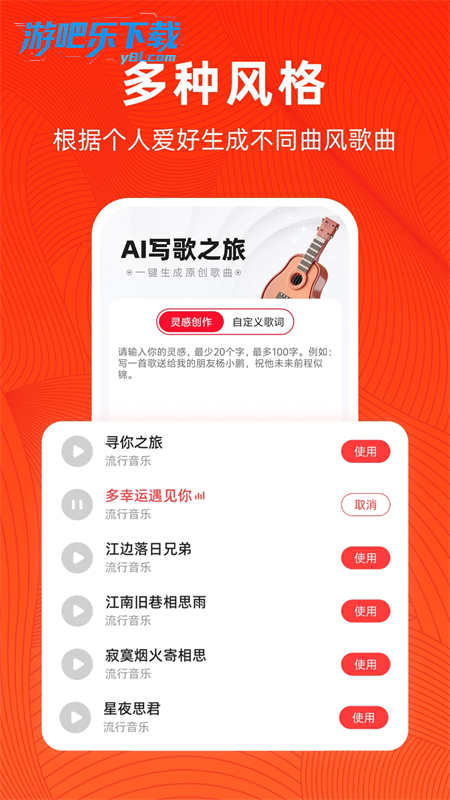 风格选择:流行、古风、摇滚、民谣、电子等,适配主题(如毕业季选民谣 / 流行)。
