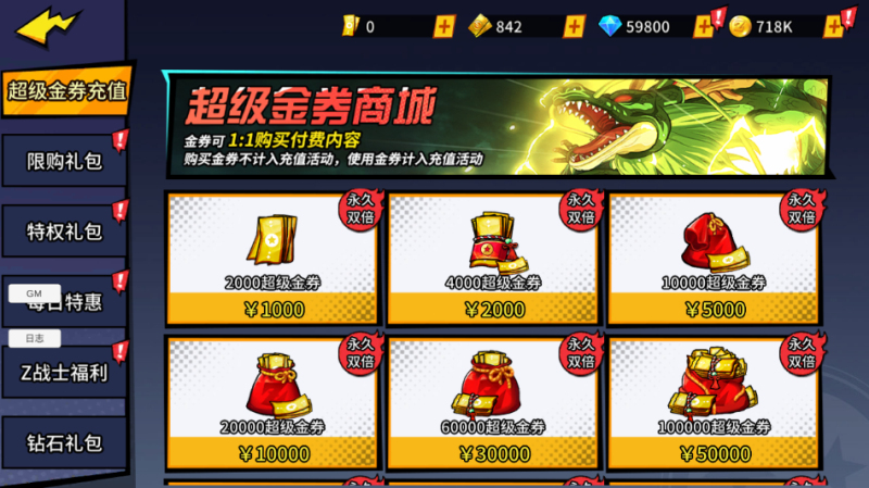 ★0.05折双倍超级金券满V版,上线送满V,白嫖畅享全部VIP特权,充值超级金券享永久双倍!