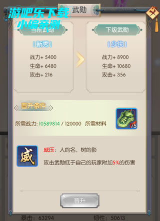 1、武勋可通过提升战力以及消耗晋升道具来提升;
