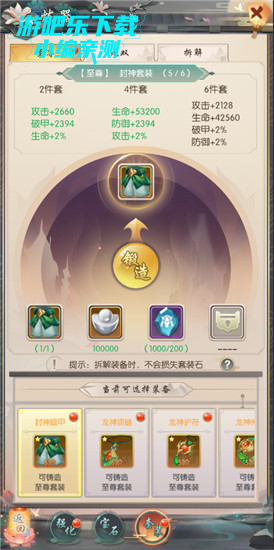 4、拆解或替换套装时,将自动全额返还消耗的套装石。
