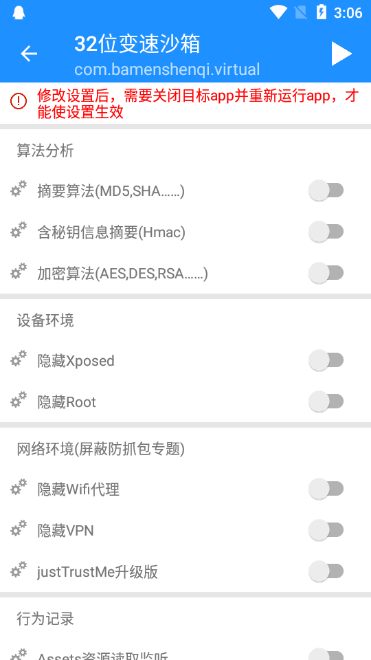 1、设备上需要安装xposed环境,并激活模块
