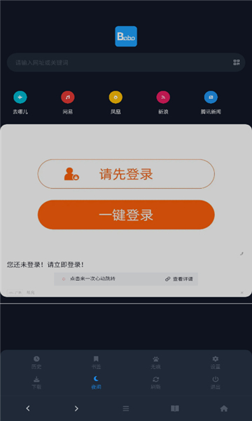 1、下载安装bobo浏览器黑色版,安装后直接打开软件