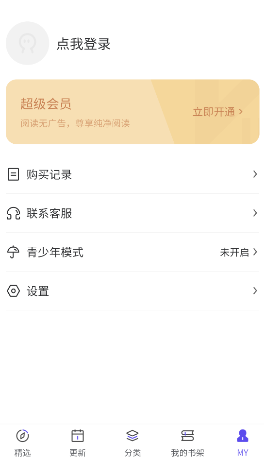 在“我的”中可以看到购买记录、设置、客服等,账号登录后还能跨设备同步阅读数据,整体更贴合个人使用习惯。