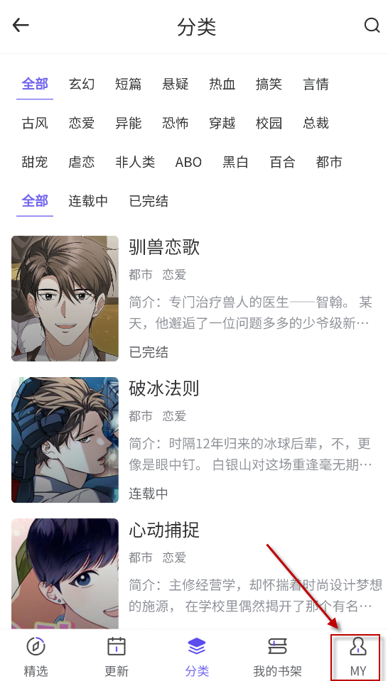 分类页涵盖玄幻、恋爱、恐怖、校园、穿越等多种类型,用户可按标签快速定位想看的作品,找到小众或冷门佳作也不再困难。