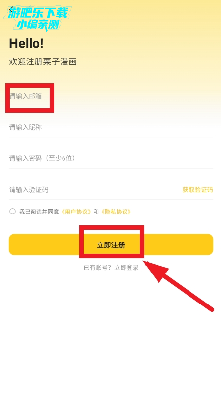 4、输入邮箱、昵称、密码和验证码后,再点击【立即注册】按钮即可成功注册账号;