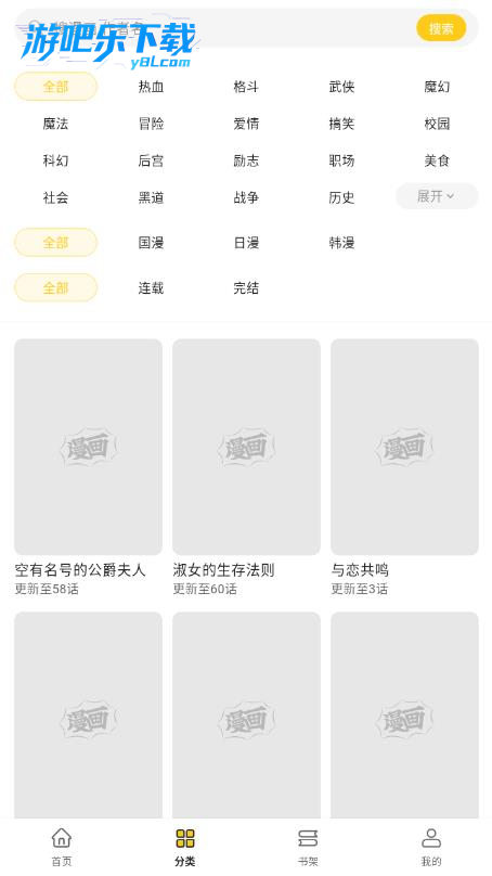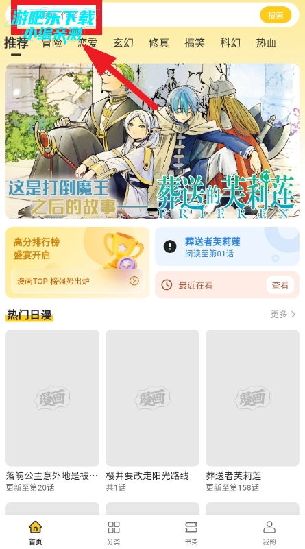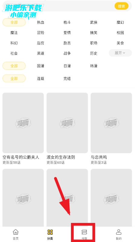 2、若不知道怎么筛选出自己喜欢的漫画,也可以通过分类栏进行选择,选择适合你口味的漫画;
