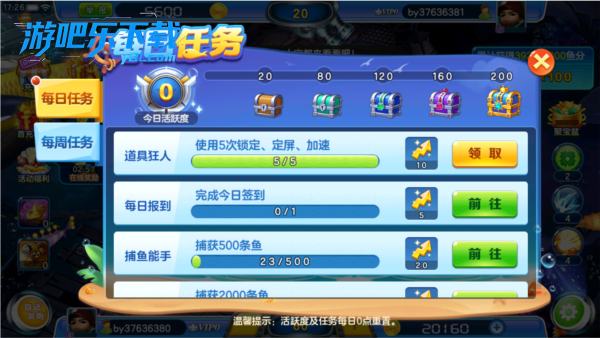 4、捕获积分鱼累积积分到目标数量,即可参与指定宝盆的抽奖