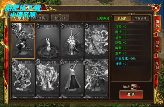 每张卡片激活后,都会直接为人物增加攻击、防御、生命等属性,激活越多,总属性越强。