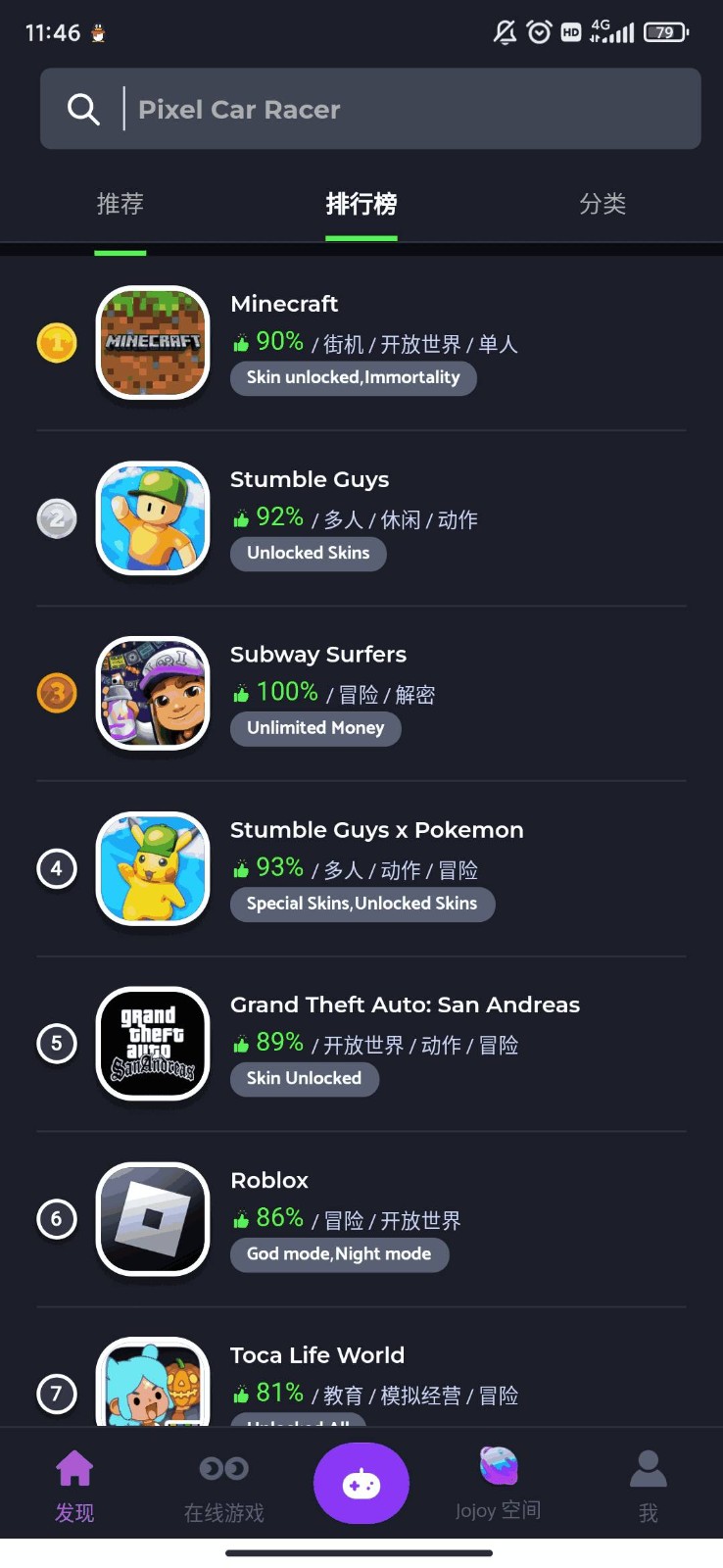 游戏资源:收录超过 10 万款游戏,涵盖休闲、竞技、角色扮演、策略等所有主流类型,包括国际服热门游戏(如原神、PUBG Mobile)