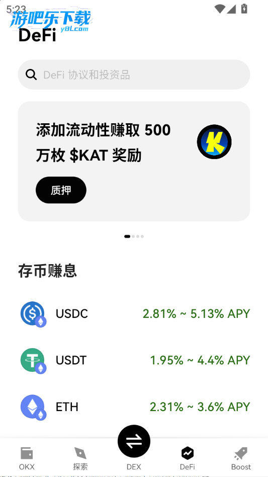 下载进入瓯易钱包软件,点击探索