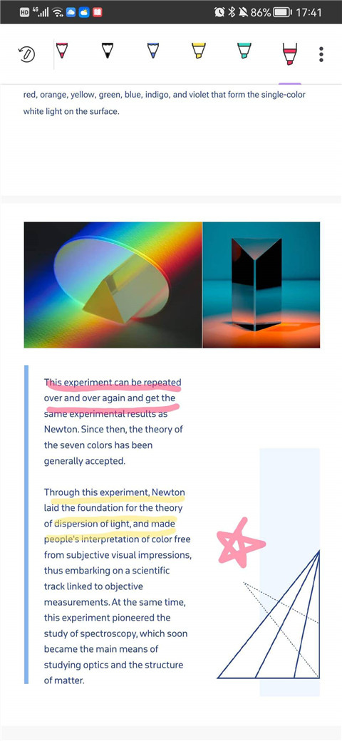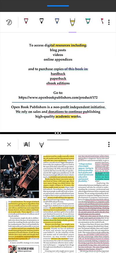 3、点击“高亮”选项,选择并将您想要高亮的文本,您还可以长按选项以选择画笔颜色。