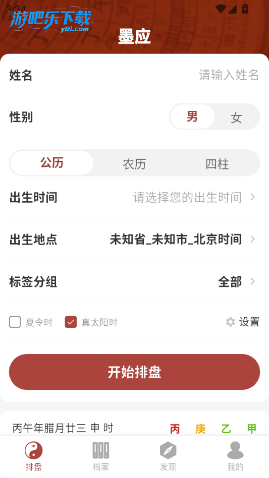 本站下载进入墨应八字软件,在这里输入姓名和相关信息