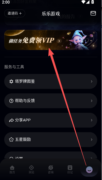 1、点击我的,在界面内上方找到做任务免费领取Vip的选项。