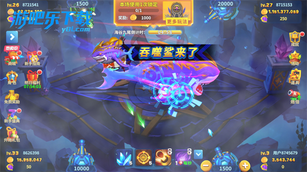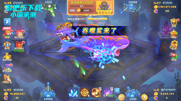 开局:用低倍炮(10-100 倍)打小鱼,积累金币,不盲目开高倍。