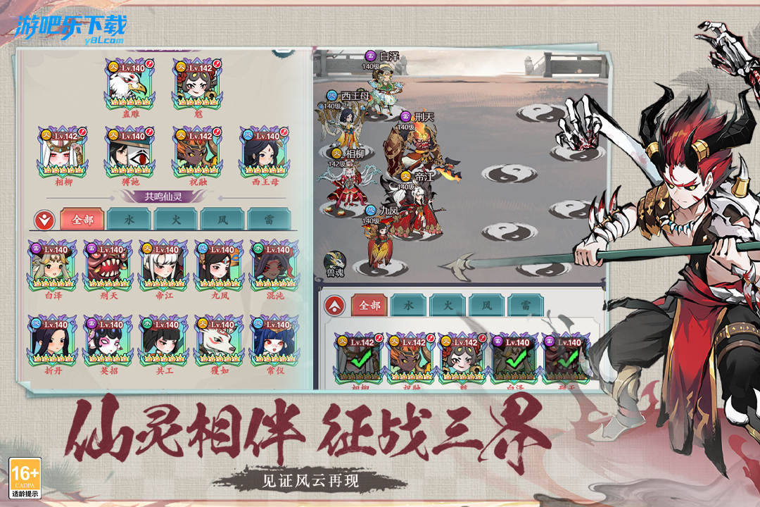 1.阵营克制:游戏内灵兽与英雄按水、火、风、雷四大阵营划分,存在明确的相互克制关系。玩家需要根据关卡特性,灵活搭配不同阵营的灵兽阵容,并利用合适的阵法强化效果。