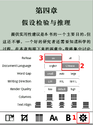 3、目前可调参数包括:字体大小、页边距、行间距、分词间距、对齐方式、最大栏数、水平较正、字体黑度、屏幕旋转等。