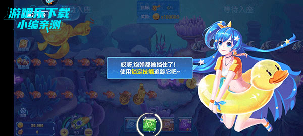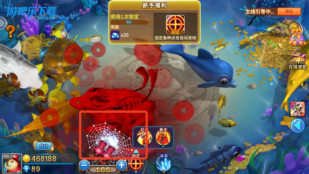 3、选择锁定技能功能,这样能够精准的直接定位在一个鱼身体上,这样能够保证万无一失。
