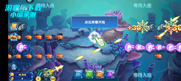 1、点击屏幕任意地方即可开炮射击,体验捕鱼的乐趣。
