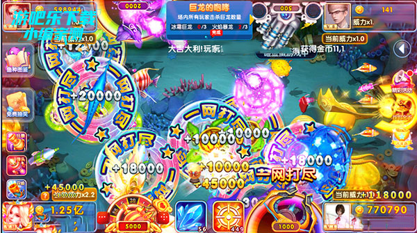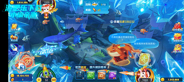 5、要注意超级boss出没,击杀boss后会得到boss提供的专属清场技能,大面积的捕捉鱼群,获得额外奖励。