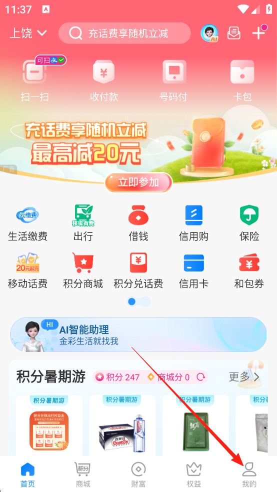 金融服务:和聚宝(理财)、和包贷(信贷,最高 20 万额度)、信用卡还款(免手续费)