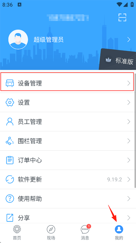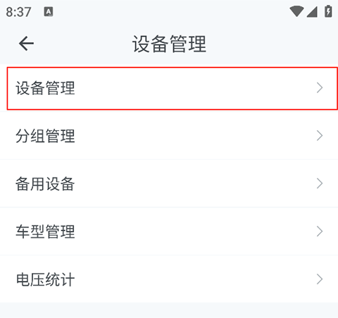 2、在设备管理页选择设备管理功能;