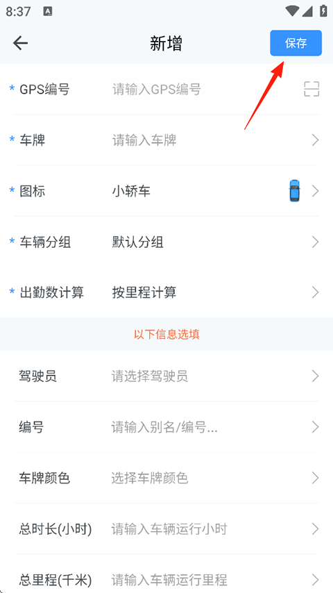 4、填写车辆信息,完成后确认无误点击保存即可。